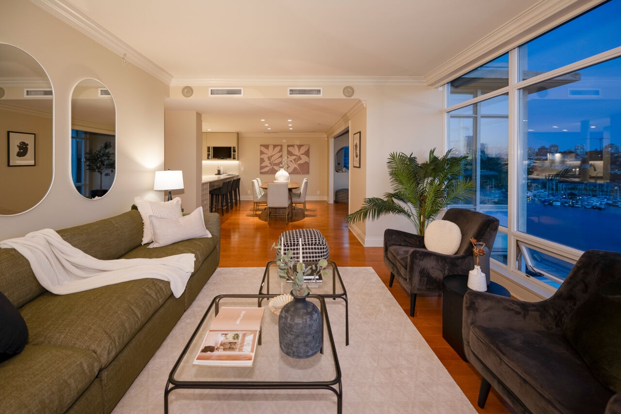 Sweeping unobstructed water, park and marina views from all principal rooms