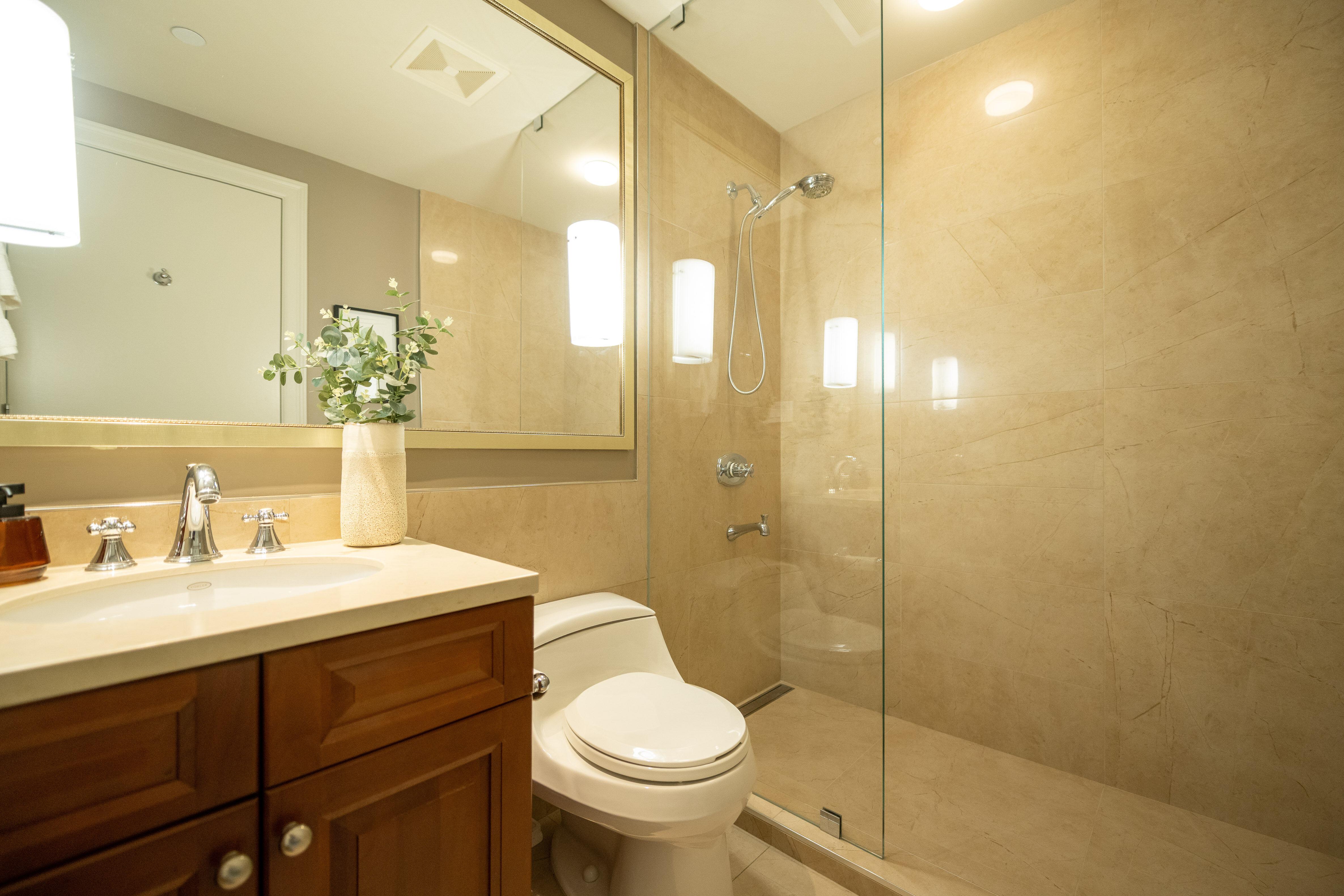 Covered 155 sq. ft. deck, with natural gas hook-up, overlooking the waterfront, park, and sea wall, perfect for lounging, dining, and enjoying the sunset views