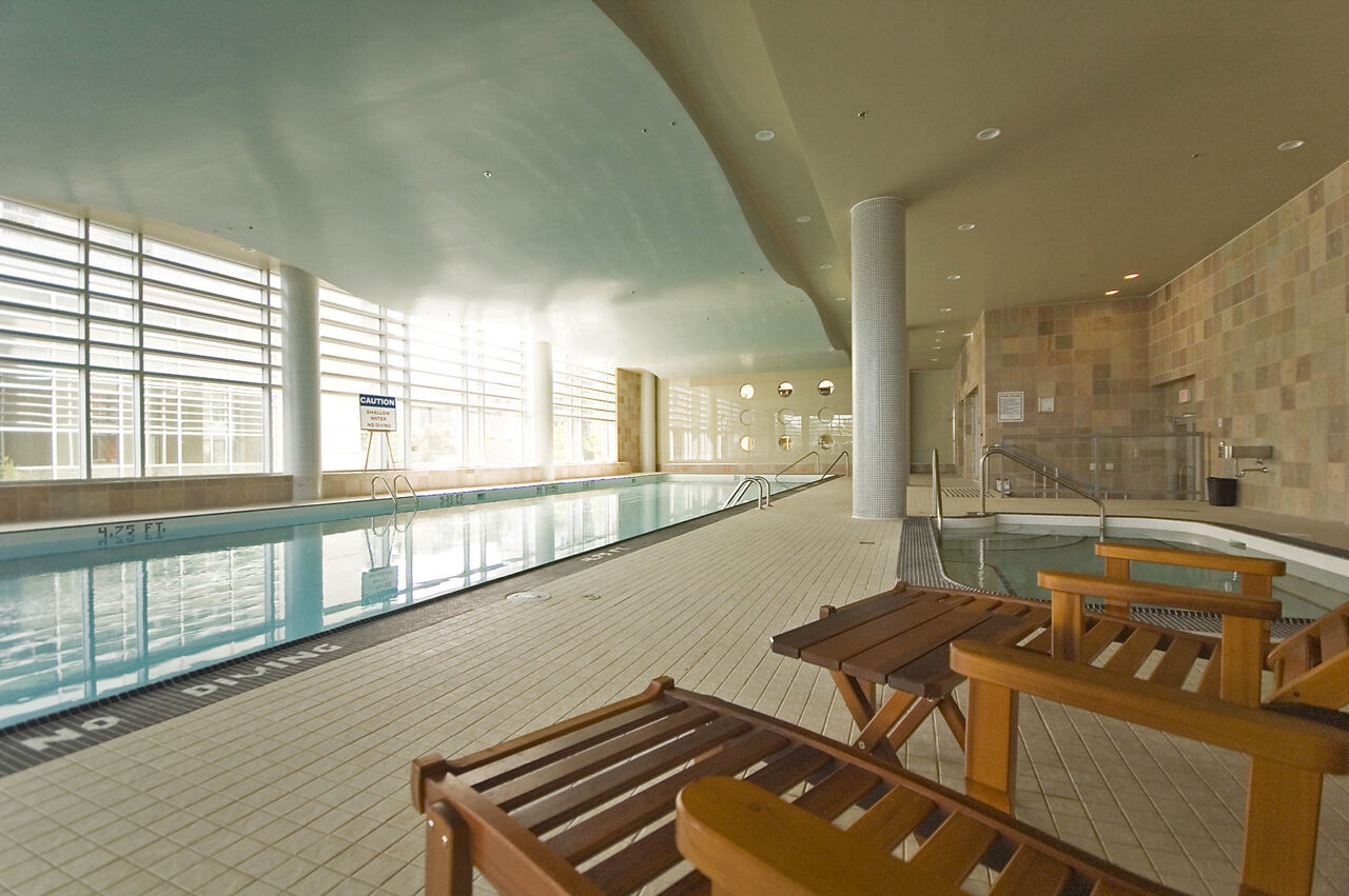 Resort-style amenities include indoor pool, steam room and sauna, gym, meeting room, theatre, pool table lounge, and playground
