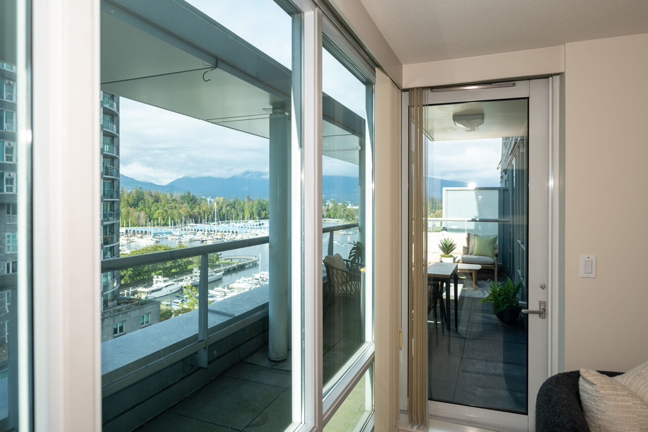 Floor to ceiling windows showcase gorgeous views of Coal Harbour, Stanley Park and the North Shore Mountains from this immaculate 2-bedroom, 2-bathroom suite in the world class Cascina and Denia residences, set right on the seawall. A rare offering - all rooms open to the huge northwest-facing private view deck with plenty of room for lounging and al fresco dining. Features include air-conditioning, gas fireplace , new wall-to-wall carpeting, fresh paint throughout and the spectacular waterfront location close to everything this vibrant neighbourhood has to offer. Resort style amenities include 24 hr concierge, indoor pool, sauna and steam room, gym, library and media room. 1- parking and large storage locker. Rentals allowed and 2 pets welcome.