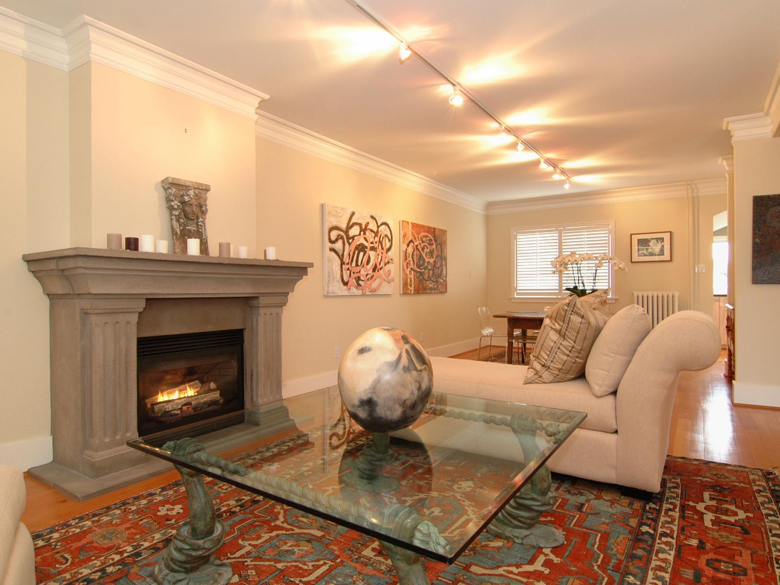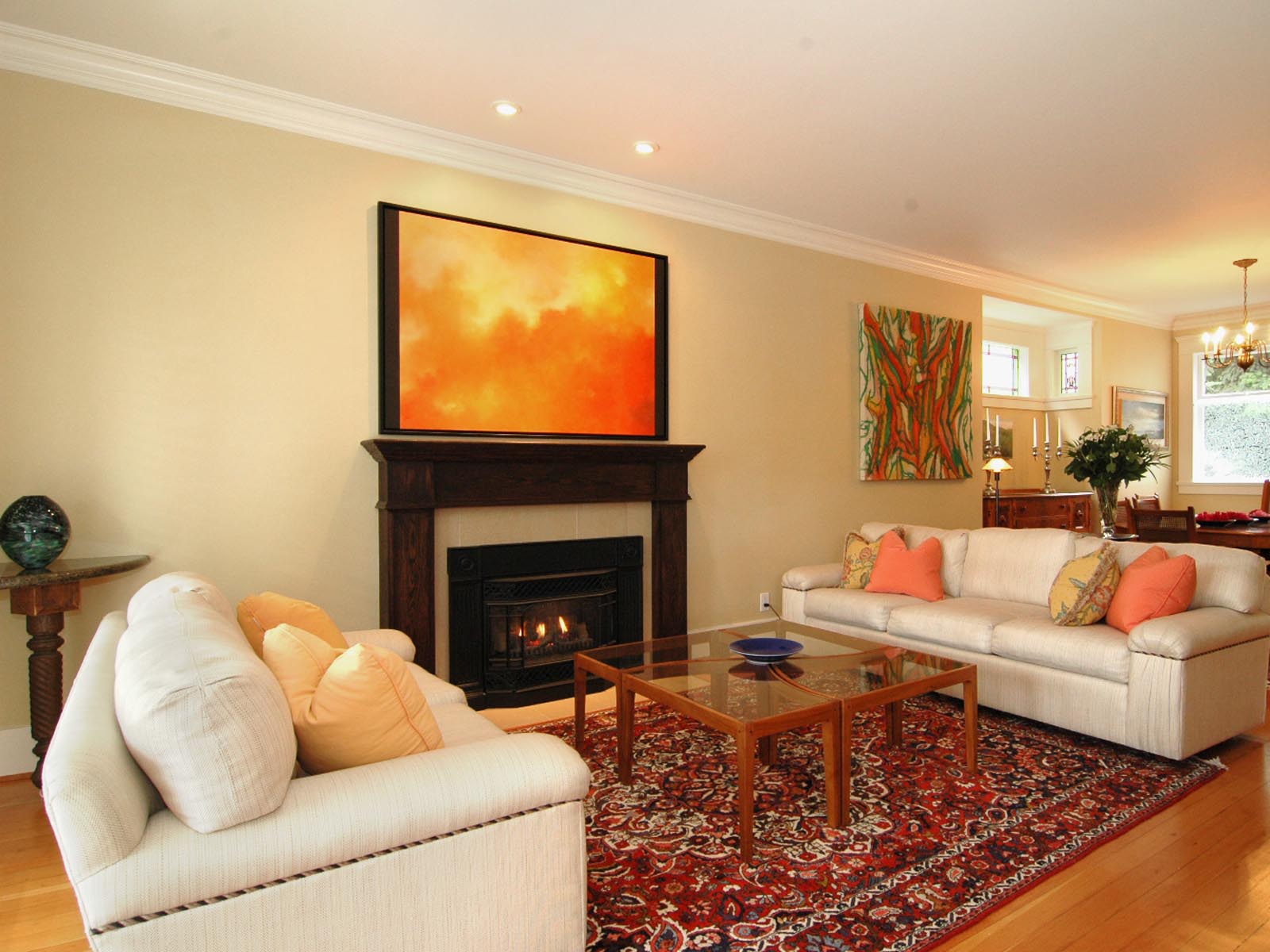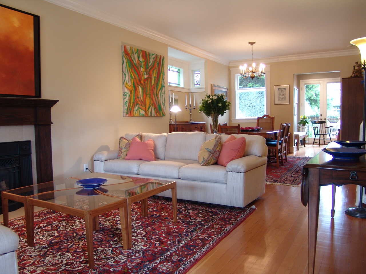 The many heritage features include refinished original fir floors, stained glass windows, high ceilings with crown mouldings, and deep baseboards. Other features include double paned windows, radiant hot water heat, new cedar deck with 3 exterior natural gas hook-ups for barbeques and/or hot tub, irrigation system, and double car garage with an extra parking spot.