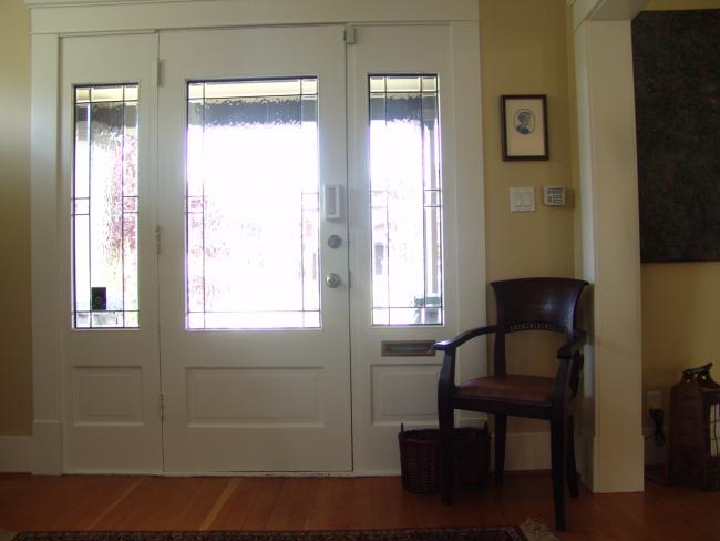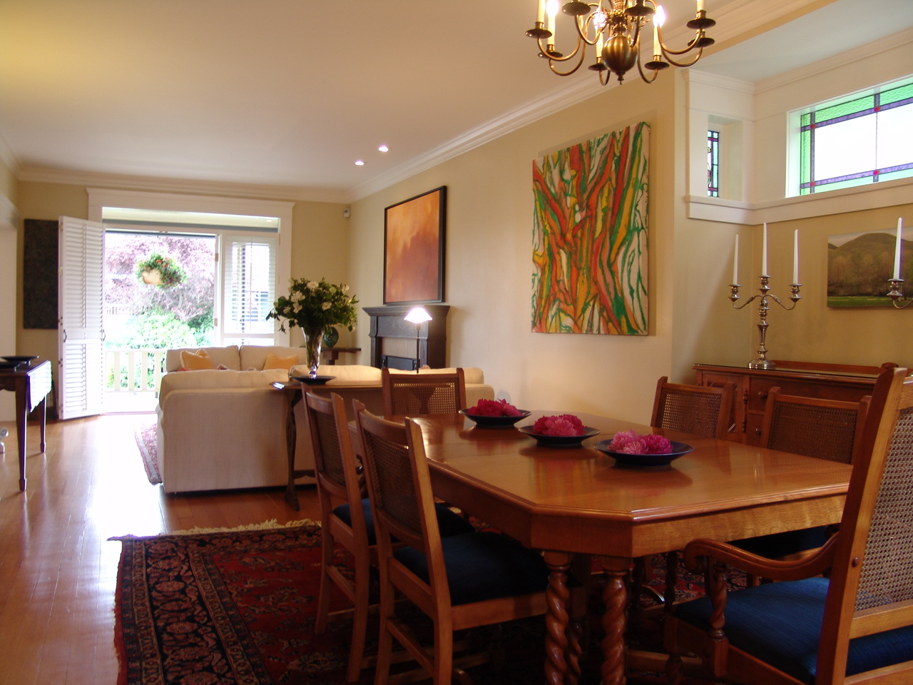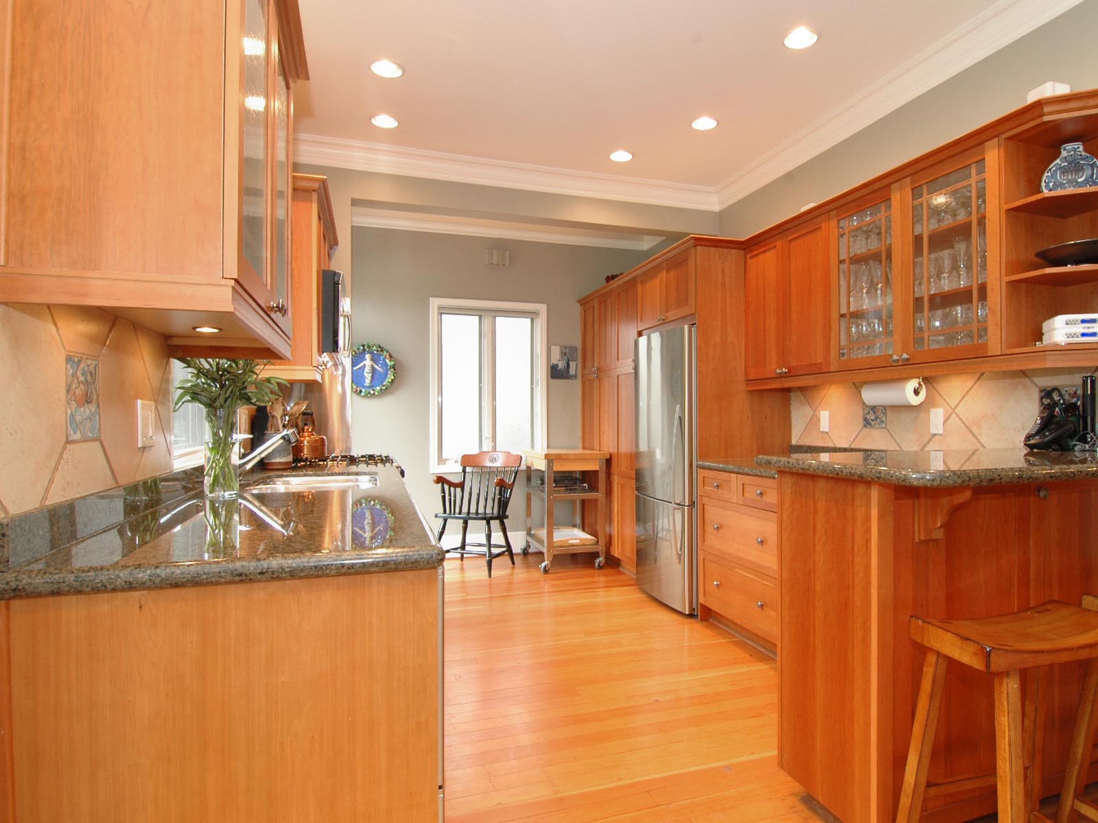 The many heritage features include refinished original fir floors, stained glass windows, high ceilings with crown mouldings, and deep baseboards. Other features include double paned windows, radiant hot water heat, new cedar deck with 3 exterior natural gas hook-ups for barbeques and/or hot tub, irrigation system, and double car garage with an extra parking spot.