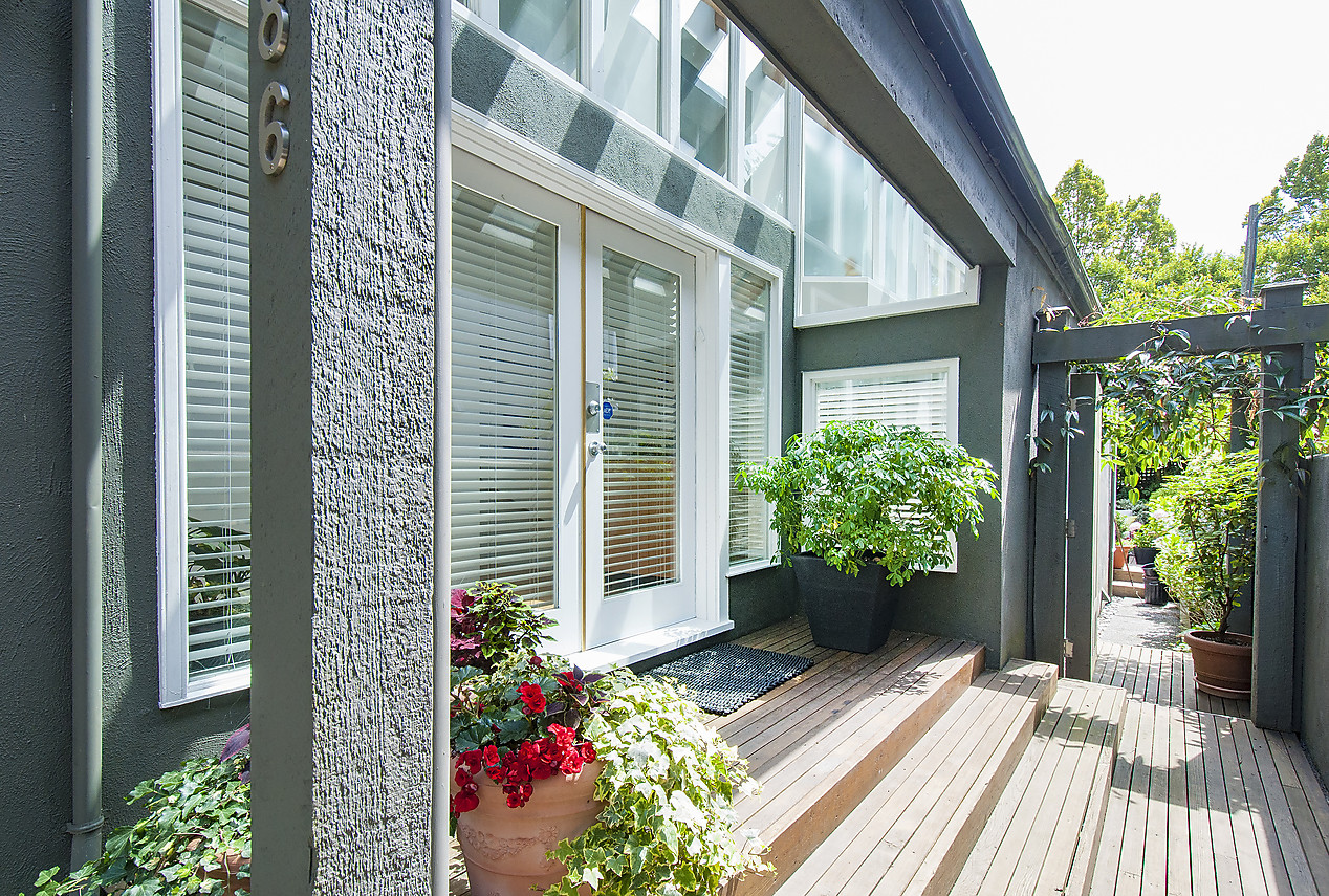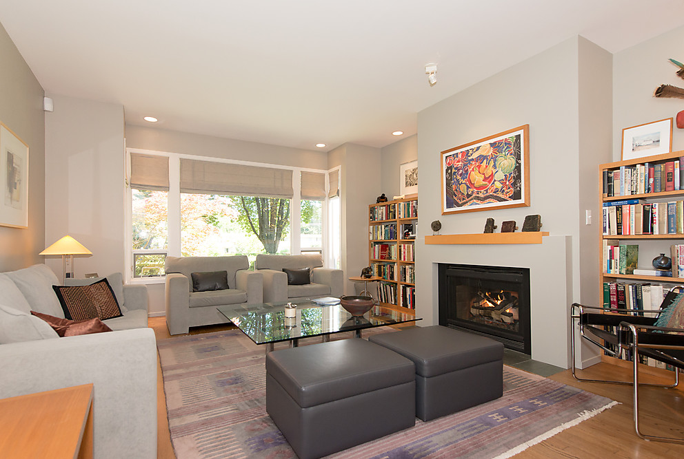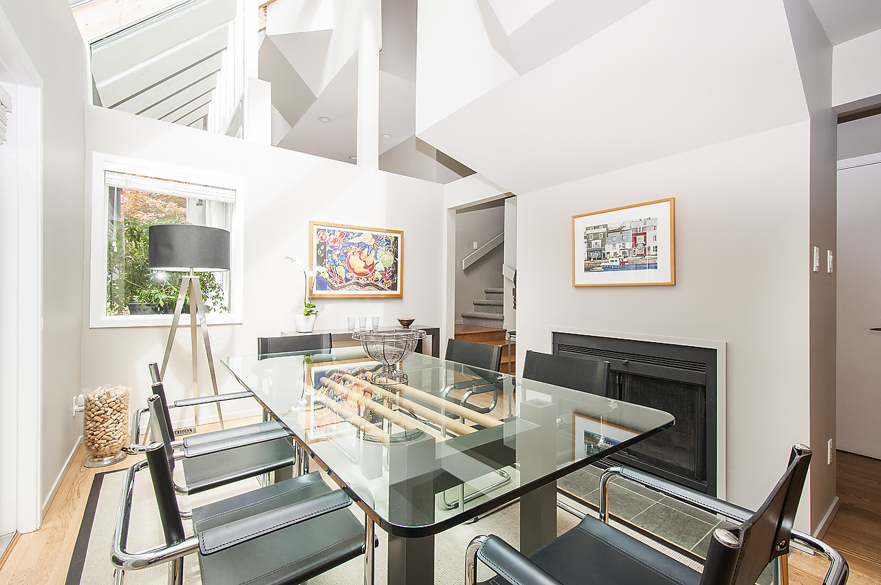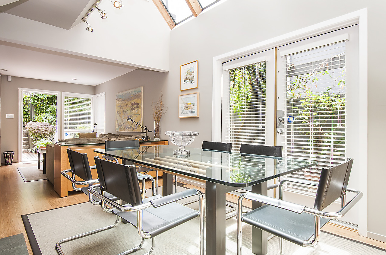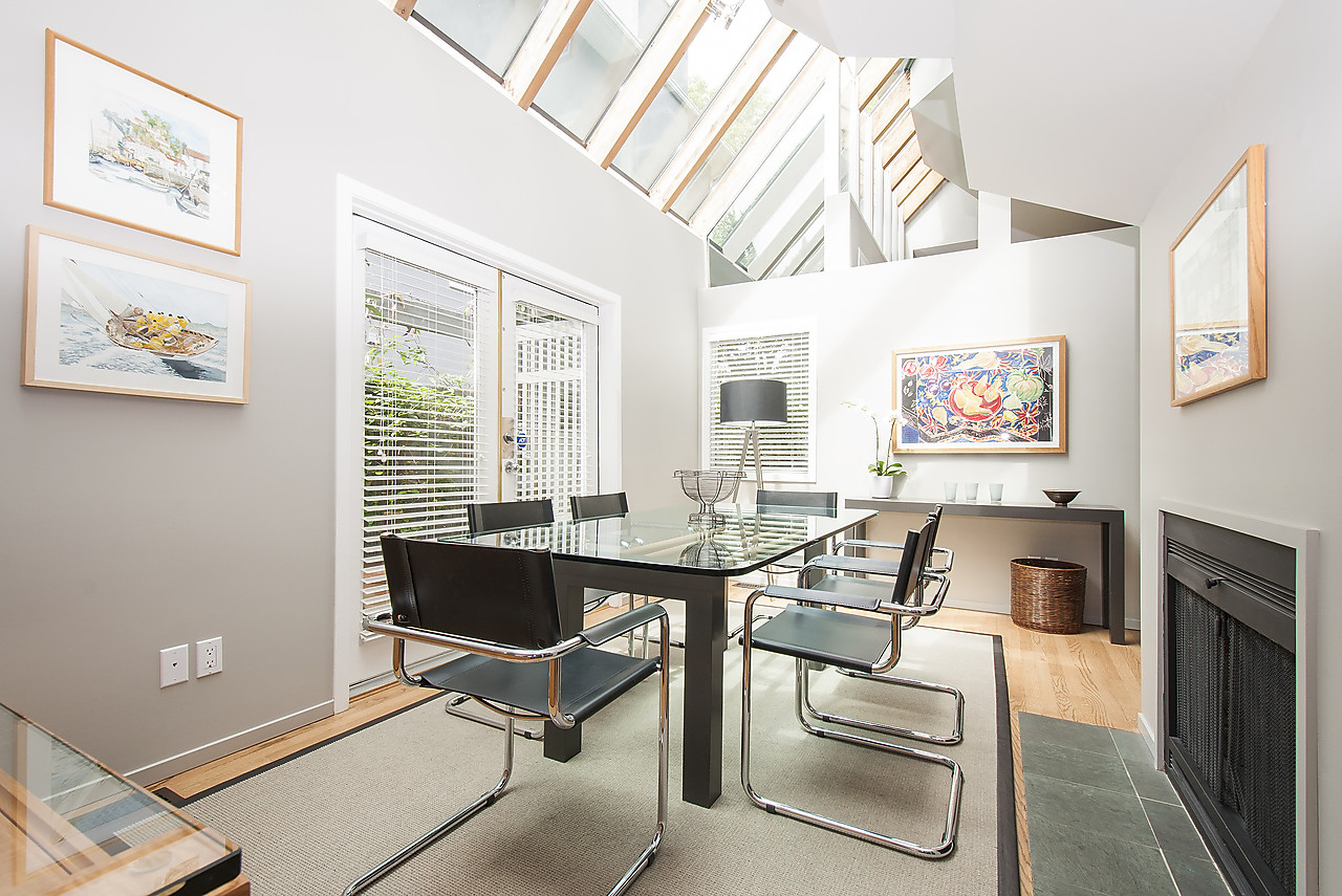 Designed by renowned architect Werner Forster this stunning two-level, side-by-side, 1/2 duplex, located in Lower Shaughnessy, is set next to Granville Park and The Vancouver Lawn and Tennis Club, within a short stroll of South Granville shops and restaurants. This airy and bright home features high ceilings with massive skylights, newly finished hardwood floors, and updated open-plan kitchen, family room and dining room that open to the lushly landscaped south-facing patio with naural gas BBQ hook-up, offering great indoor-outdoor living and flexibility for entertaining. The spacious living room features a gas fireplace & custom built-in cabinetry and overlooks the newly landscaped front garden. Excellent separation between the office/den and 2 ensuited bedrooms, including the master with walk-out deck overlooking the park. HURRY, this is special!