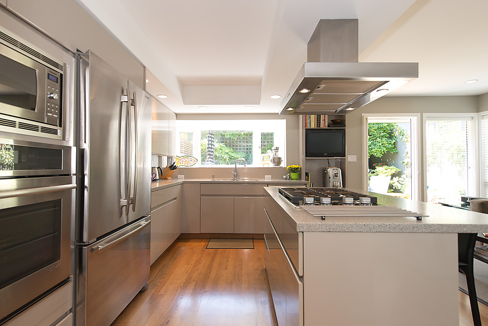 - DCS/Fisher Paykel 4 burner gas cooktop and Turboair hood fan