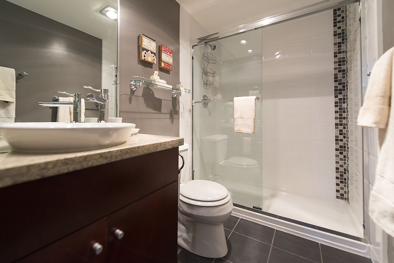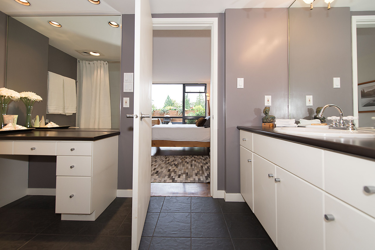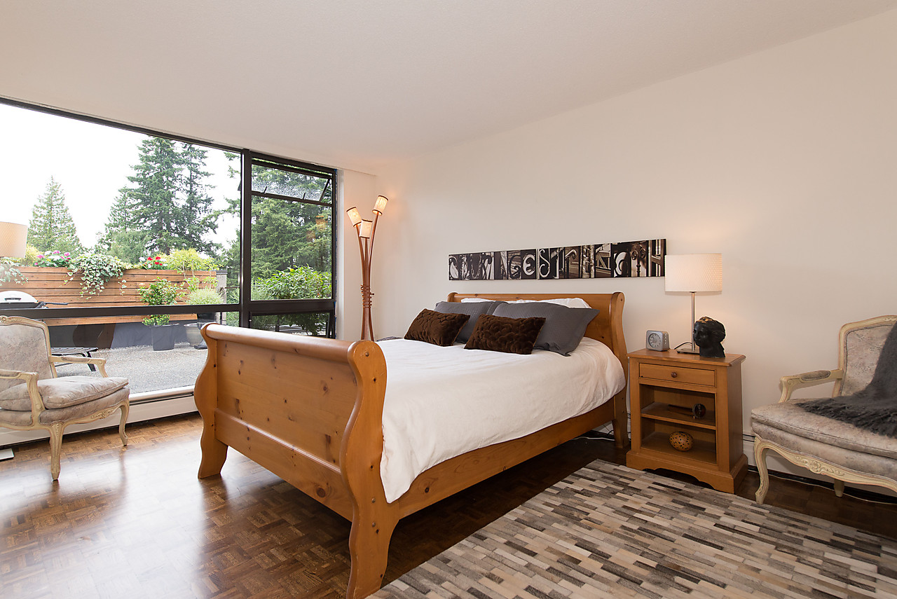 Gorgeous 1215sqft, RENOVATED, LAKEFRONT concrete condo at Shaughnessy Place set overlooking Vandusen Gardens. 2 bedrooms and 2 full bathrooms in this ultra-spacious layout that accommodates house-size furniture. Completely private huge (296sqft) lakefront deck! Tastefully updated kitchen with breakfast bar, updated bathrooms, gleaming hardwood floors, side-by-side in-suite laundry, master bedroom with large ensuite bath with double vanities, and huge walk-in-closet. This immaculate home comes with 2 parking spaces and a large storage locker. Pets welcome! Nothing to do but move into this freshly painted home in this prestigious, beautifully landscaped property with 24 hour gated security, outdoor pool, squash court, and live-in caretaker.