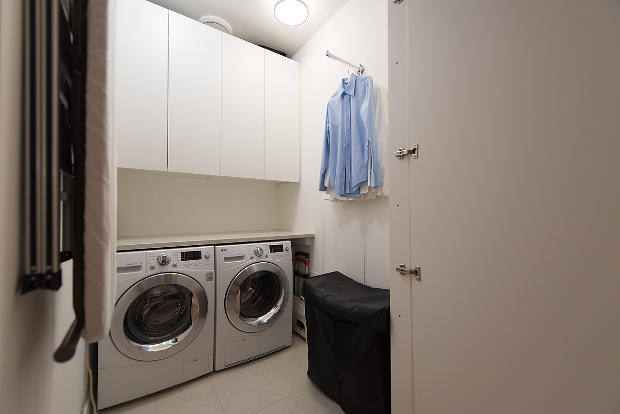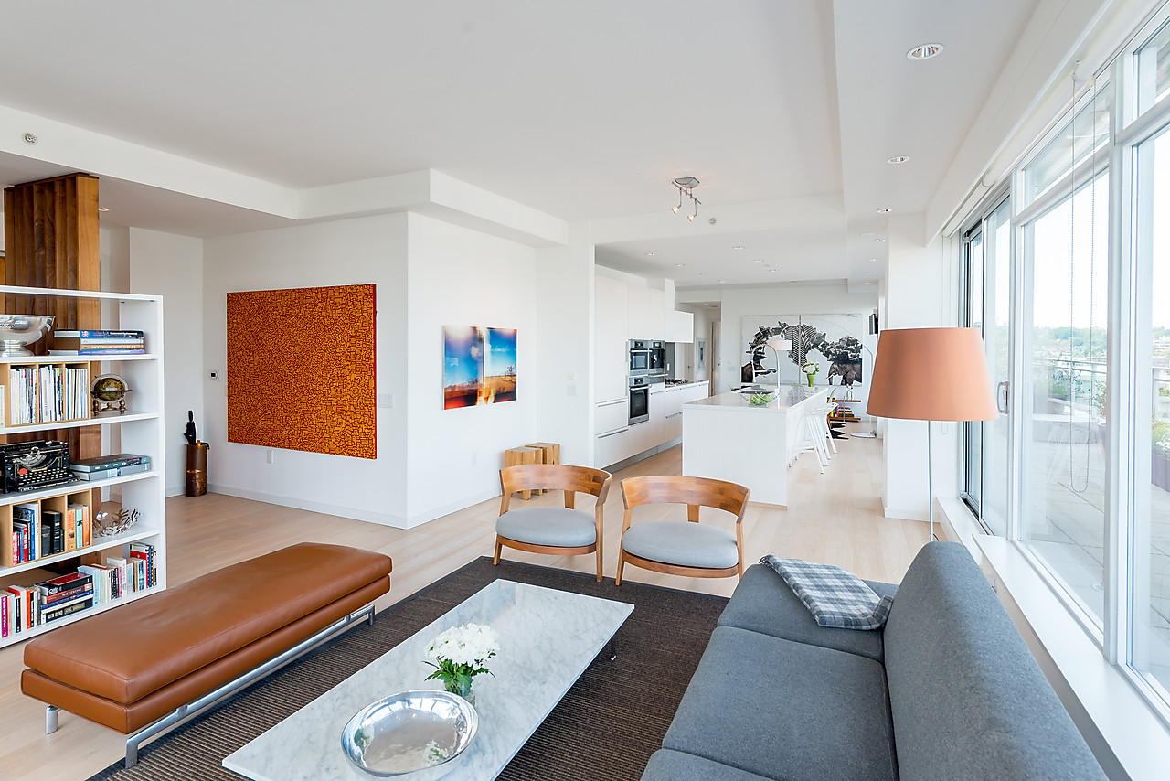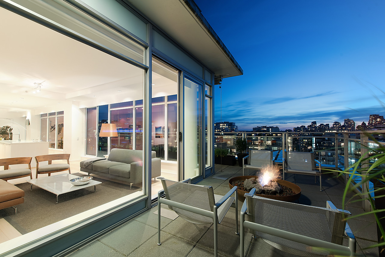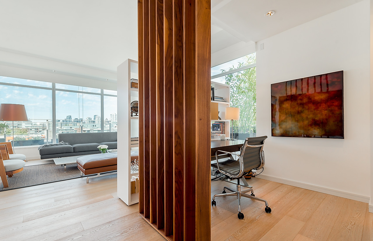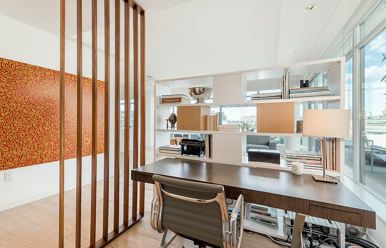 VIEWS TO FALSE CREEK and glorious western exposure from this ULTRA-CHIC, 2 bedroom plus office, CUSTOM DESIGNED condo that opens to a fabulous 841 SQ FT WRAP-AROUND DECK enjoyed from every room. This stylish and sophisticated home features new wide-plank White Oak floors throughout, sleek custom cabinetry, remote access lighting system, 108-bottle Gaggenau wine fridge, fine Eggersmann cabinetry, Sonos Sound System, six Miele appliances, 36" SubZero fridge, side-by-side laundry, Travertine-clad bathrooms and a state-of-the-art heating and cooling system. Well-equipped gym plus access to the Gold Medal Club with indoor swimming pool. TWO SIDE-BY-SIDE PARKING AND TWO STORAGE LOCKERS. Truly exquisite!!