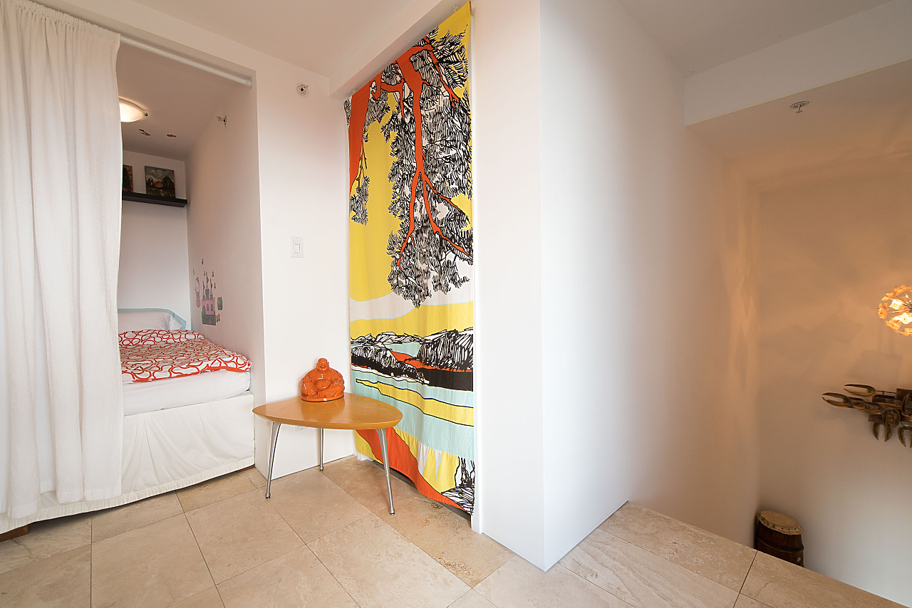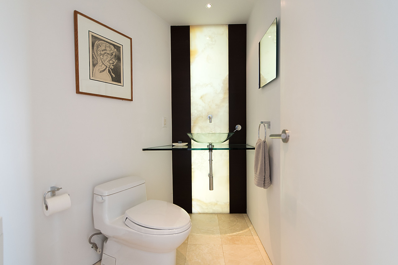 - Travertine marble floors (with infloor radiant heating beside the bed)