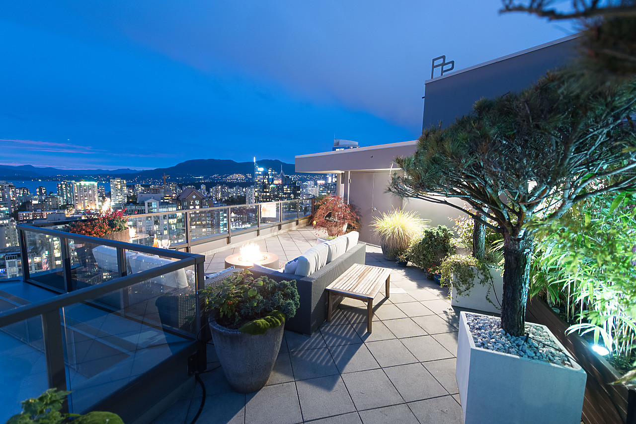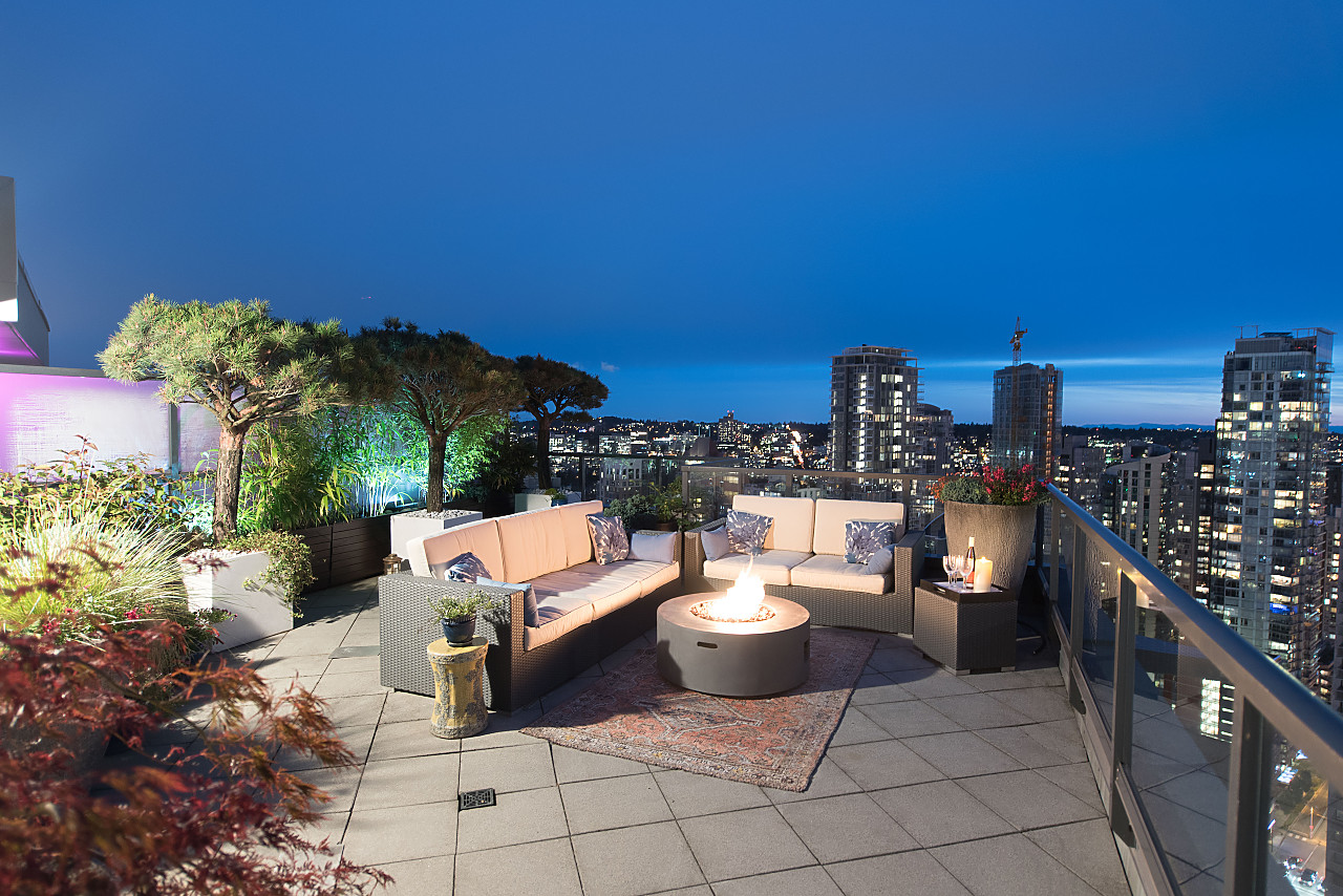 - Huge 471 sq. ft. roof deck with handy storage area, natural gas outlet , hot and cold running water, and beautiful easy-care landscaping with irrigation system